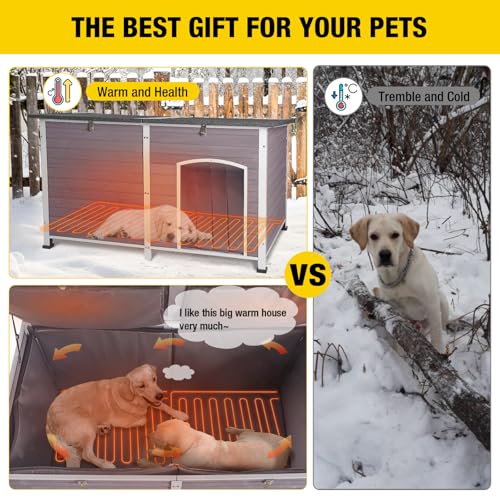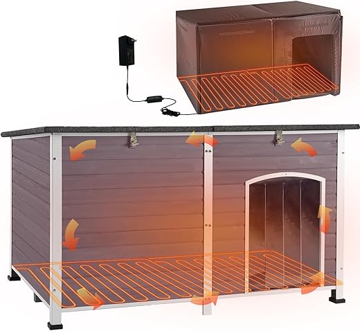 - 【High-Standard Heating System】 This heated dog house upgrade the dog pad with heater,equipped with a 12V low-voltage heating system to controlled warmth well inside, meets high safety standards, keeps the cats warm and cozy inside even when temperatures under 0°C.