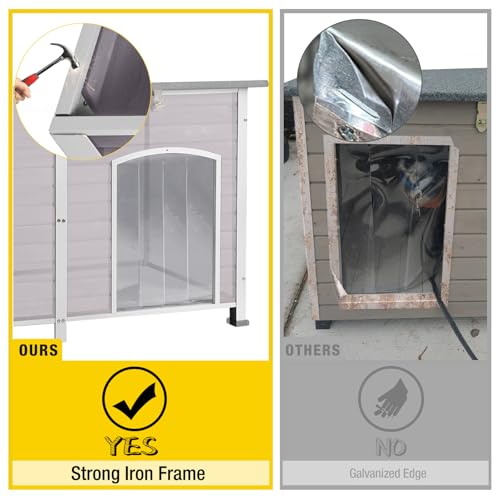- 【Strong & Durable】Our dog house made of UNIQUE all-around stronger iron frame durable than galvanized edge and the thickness of the panels is 0.47″,stable enought prevent destroy from dogs.Anti a 180-pounds adult can easily sit on the roof ,durable enough.