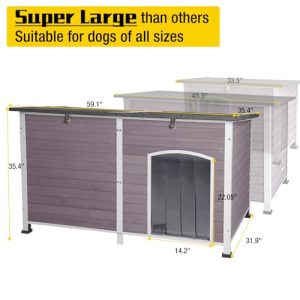 - 【Weather & Water Resistant】Insulated dog house made of 100% Fir wood with security waterproof paint,raised floor with customized plastic waterproof feet pad & asphalt roof & high quality curtain provide protection from the elements and keep the house comfortable & dry. Perfect for indoor and outdoor use.