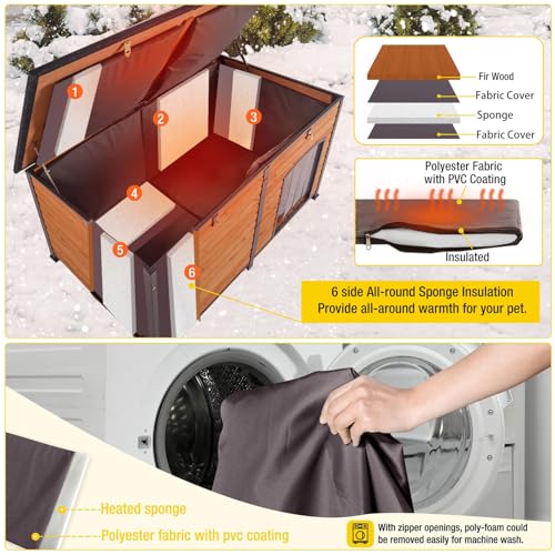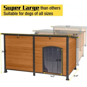 - 【Weather & Water Resistant】Insulated dog house made of 100% Fir wood with security waterproof paint,raised floor with customized plastic waterproof feet pad & asphalt roof & high quality curtain provide protection from the elements and keep the house comfortable & dry. Perfect for indoor and outdoor use.
