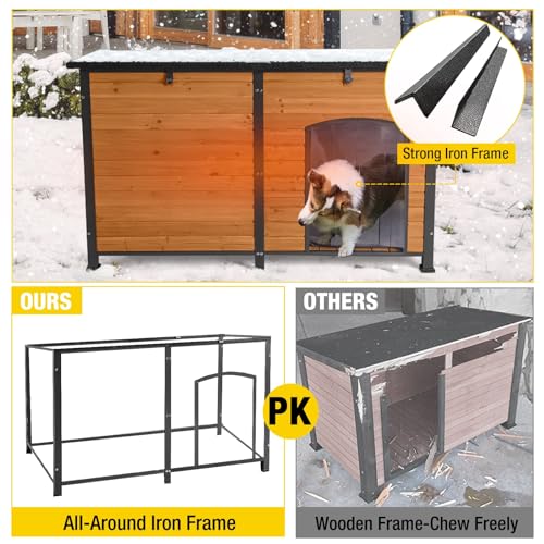 Aivituvin Dog House Outdoor 59″ Extra Large Insulated Dog Kennel with Movable Insulation Liner,All-Around Iron Frame