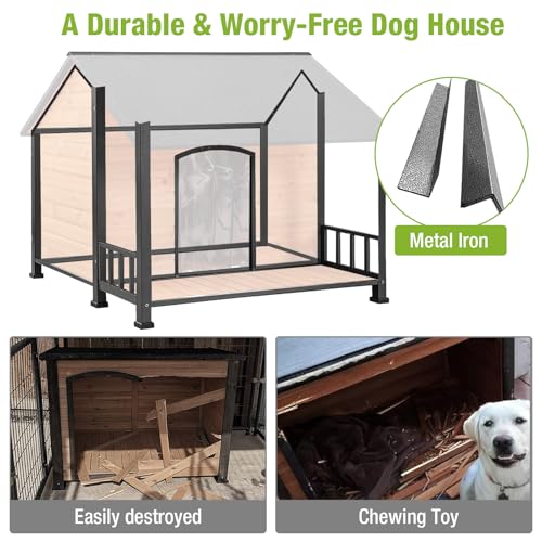 Extra Large Dog House Outdoor for Large Breed Dogs, Insulated Dog Kennel Outside, Weatherproof, Metal Frame Dog Shelter with Elevated Floor and…