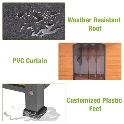 - WEATHERPROOF PROTECTION: Featuring an asphalt roof and waterproof plastic feet pads, this dog house offers comprehensive protection from rain, snow, and humidity. Keep your pet dry and comfortable, no matter the season.