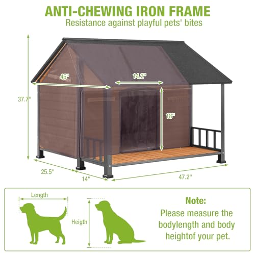 - IDEAL SIZING FOR VARIOUS BREEDS: Crafted with dimensions of 45in(L) x 47.2in(W) x 37.7in(H), this dog house offers ample room for dogs of varying sizes. The entrance, spanning 18in(H) x 14.2in(W), ensures effortless access. It’s the perfect addition to your home or yard.